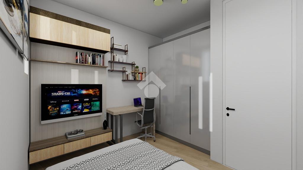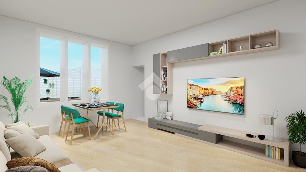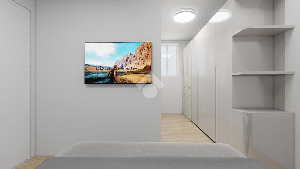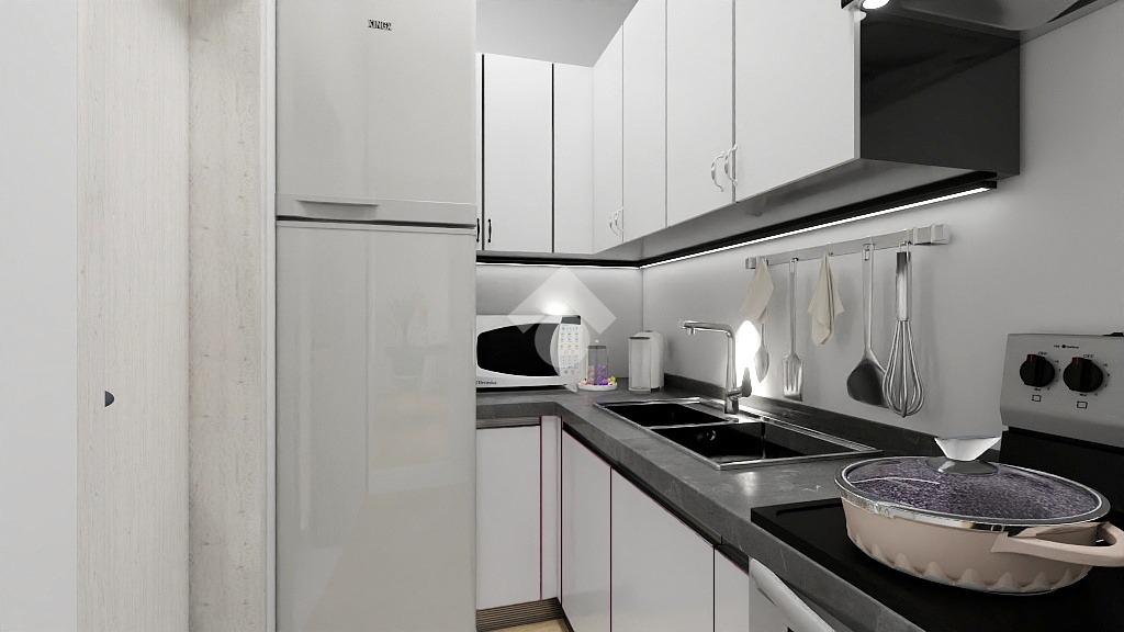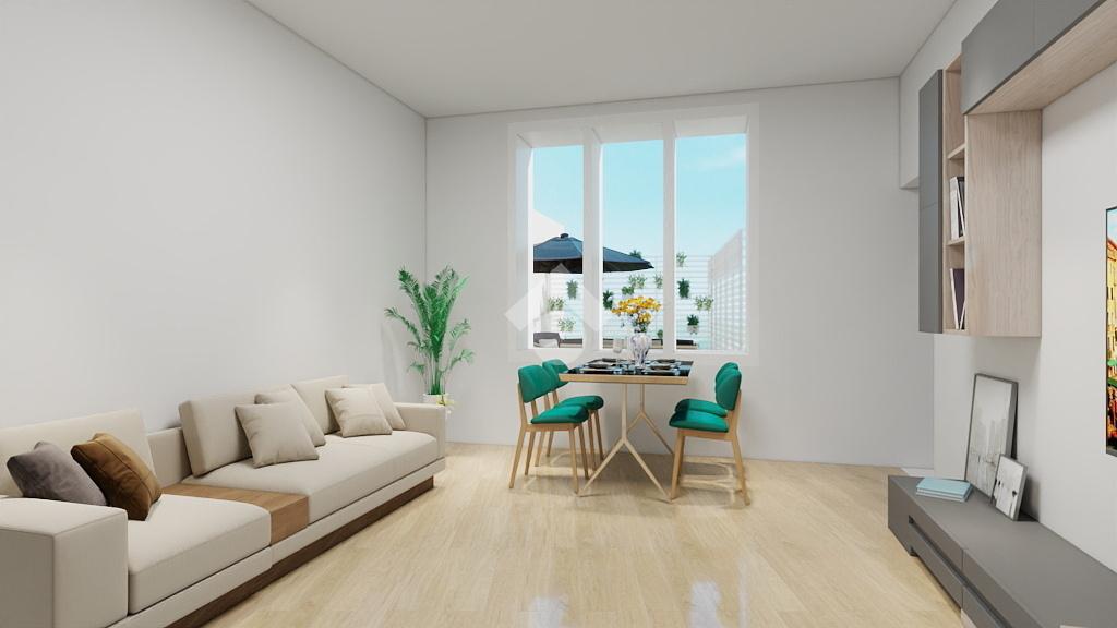 L'ingresso si apre sulla zona giorno composta da un soggiorno e cucinotto separato; un disimpegno separa dalla zona notte: troviamo due camere, ed un bagno finestrato completo di doccia.