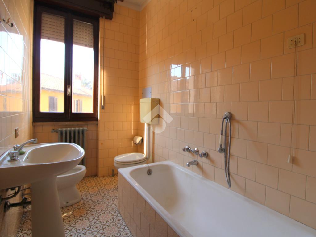 Il bagno finestrato è dotato di vasca ed attacchi per la lavatrice.