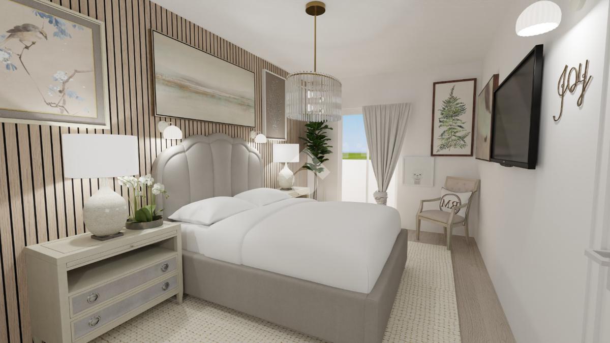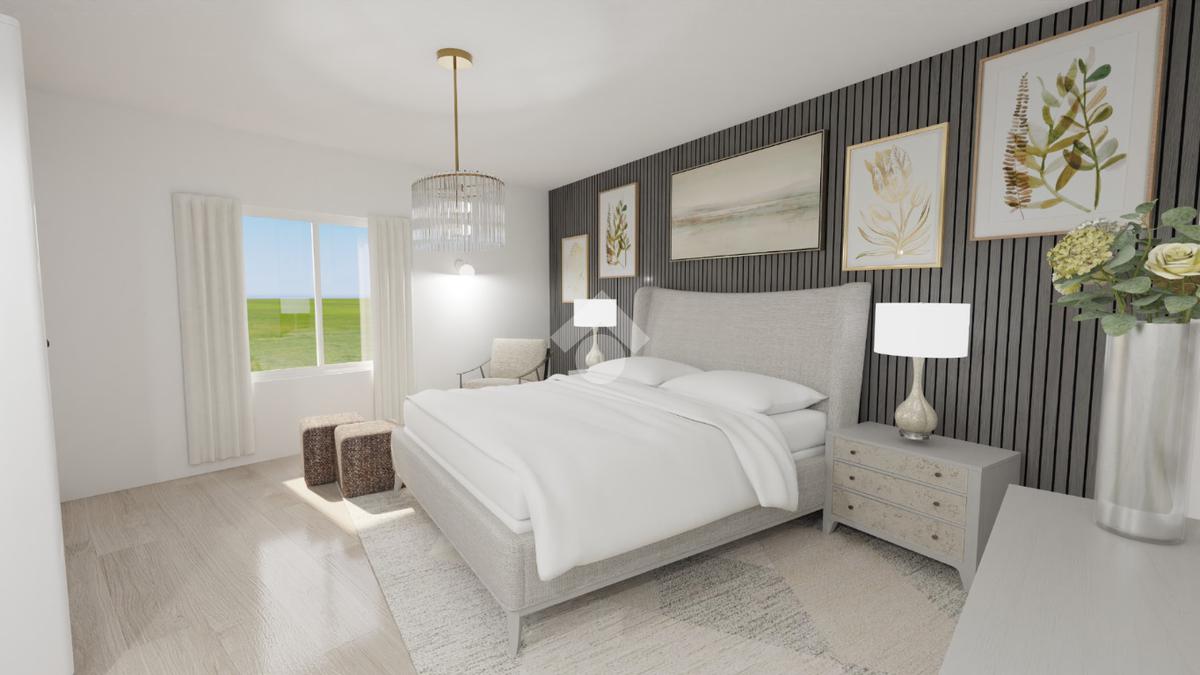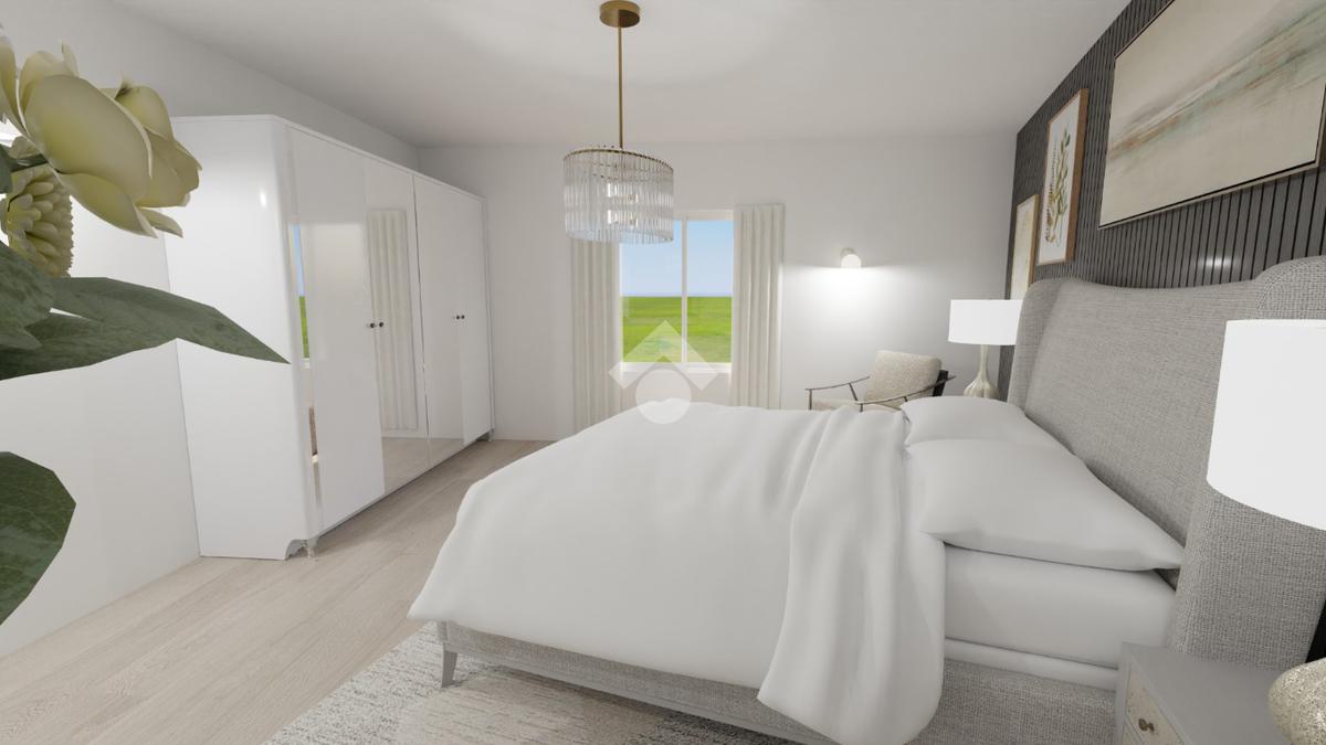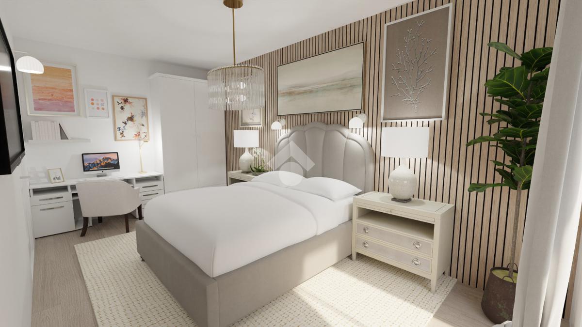 Il disimpegno porta alla zona notte, formata da una spaziosa camera matrimoniale e da un’ampia camera singola dotata di porta-finestra dalla quale si accede al secondo balcone.