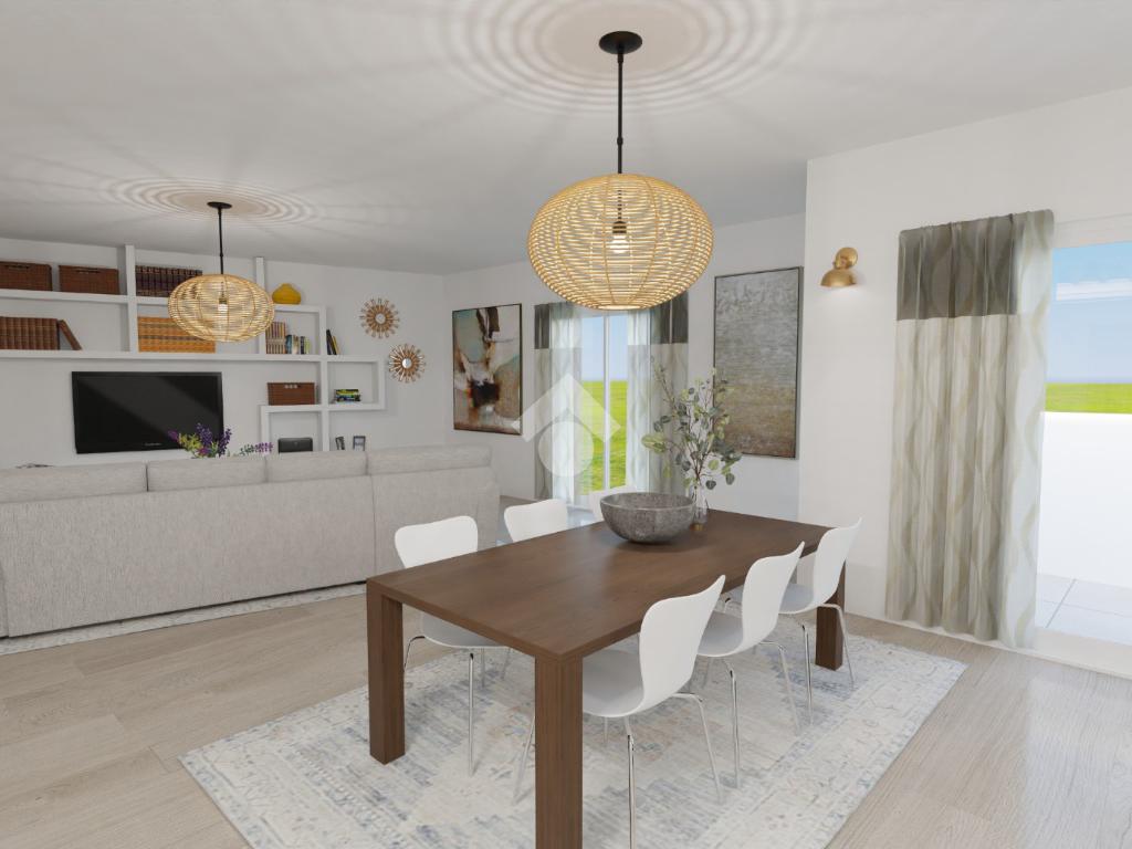 Serramenti esterni in PVC con doppio vetro e tapparelle elettriche;Impianto di riscaldamento AUTONOMO con CALDAIA a CONDENSAZIONE posizionata all’esterno dell’appartamento;Impianto elettricoPavimentazione in grès porcellanato effetto marmoPorte interne lisce biancheImpianto di climatizzazione freddo/caldo in tutte le stanzeTi interessa visionare l'immobile?