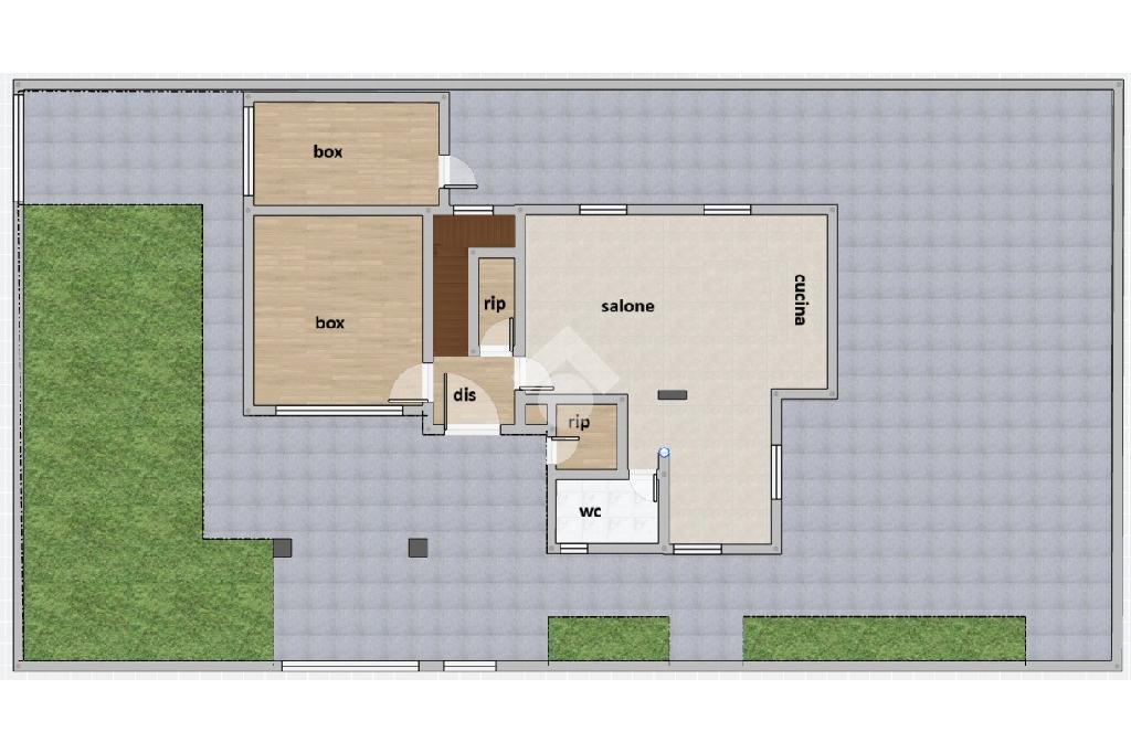 Esternamente troviamo un comodo portico all'ingresso dell'abitazione sfruttabile come area relax o semplicemente come ricovero auto, oltre ad un ampio ripostiglio. L'area esterna di oltre 300mq, in parte giardino e in parte pavimentata, è stata organizzata per permetterne il massimo utilizzo e vivibilità.