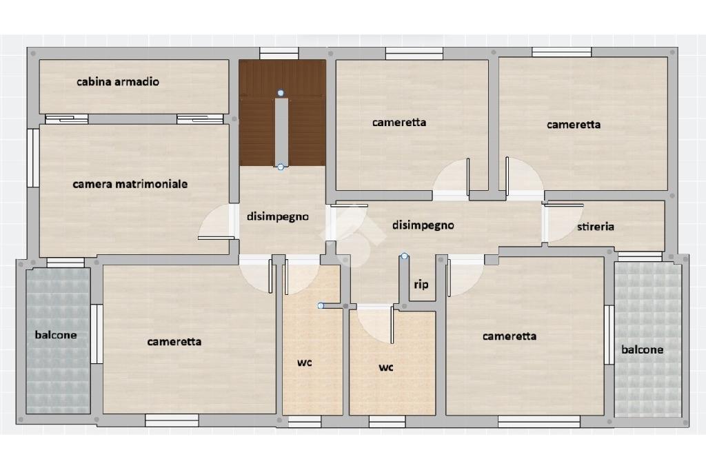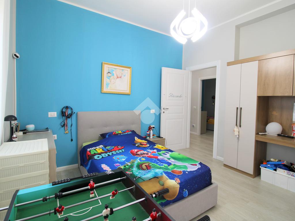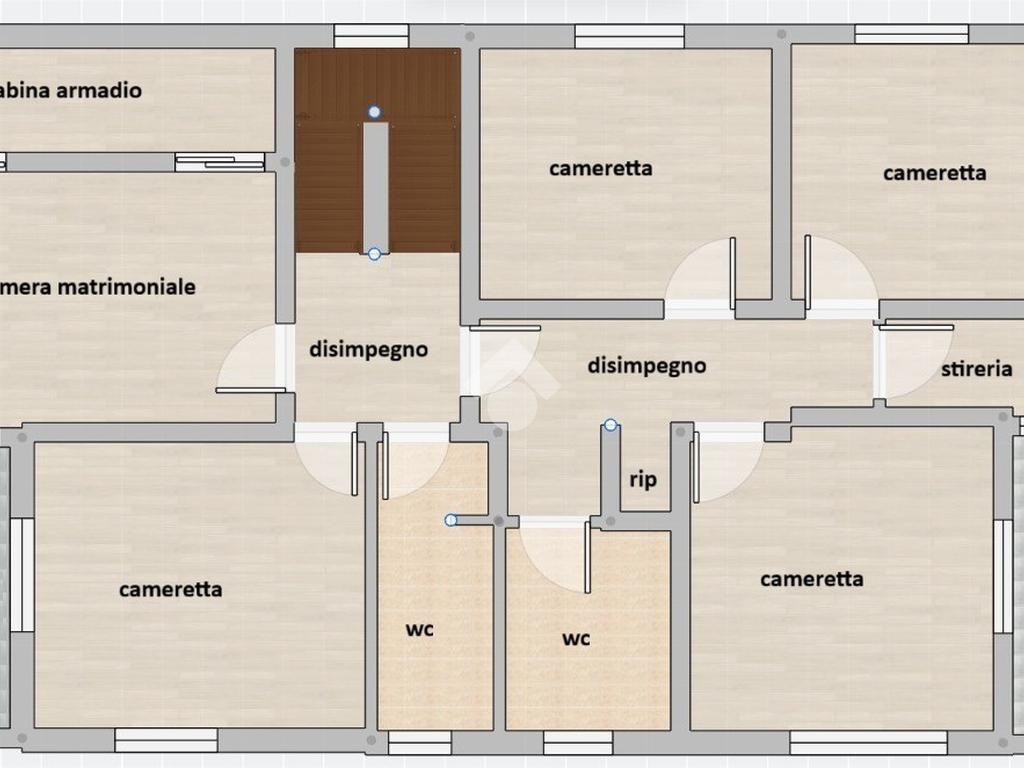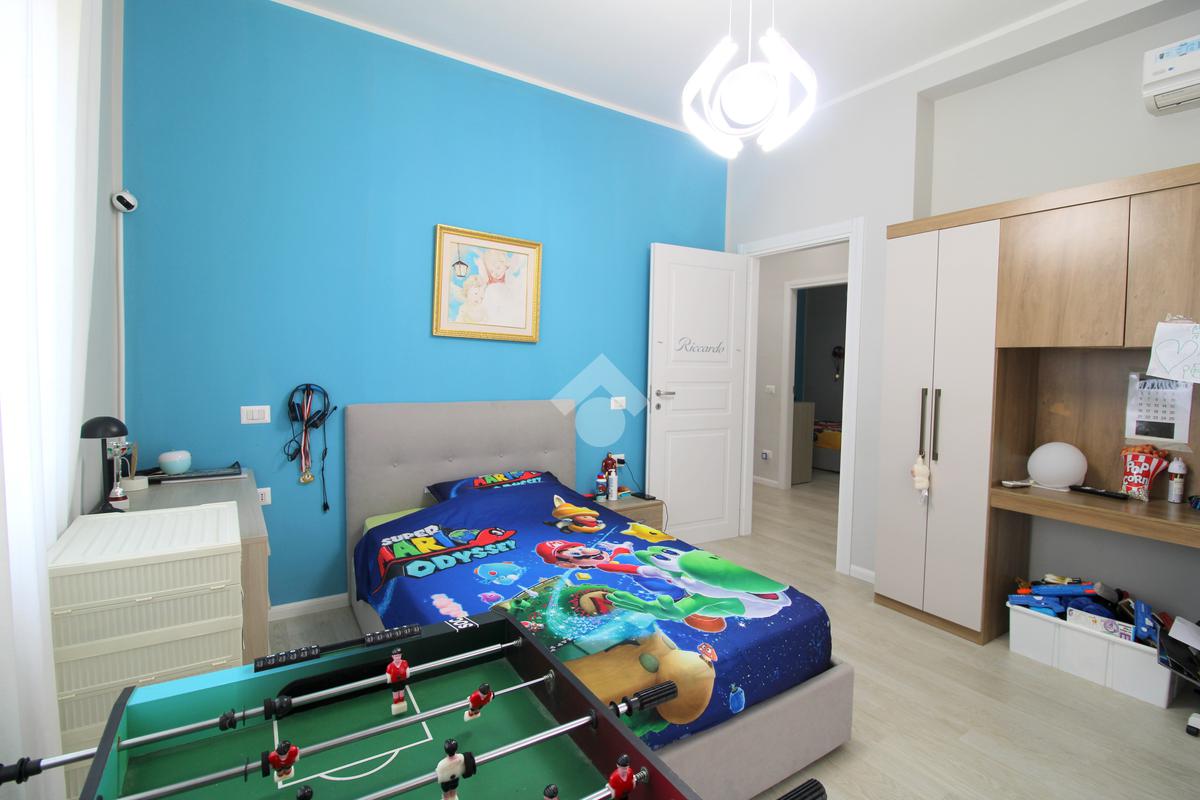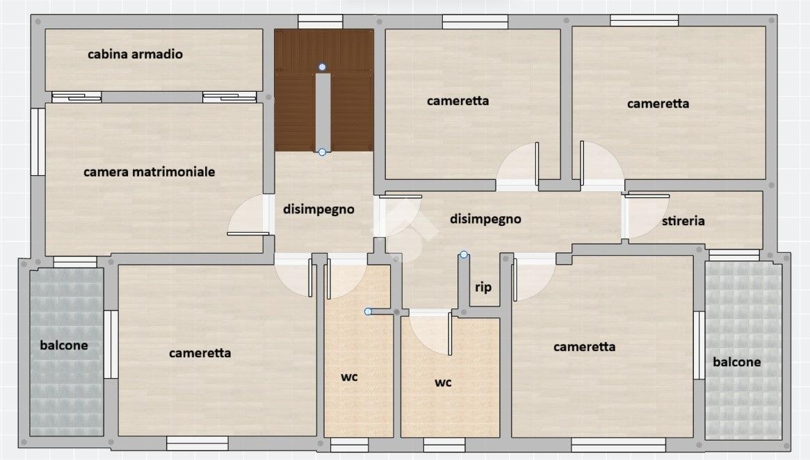 Nella zona notte troviamo cinque ampie camere da letto tutte di taglio regolare e facilmente arredabili, due bagni finestrati completi di doccia, un locale stireria, un grande ripostiglio con lavatrice e asciugatrice annesse, un armadio a muro e due balconi che permettono l'uscita sull'esterno a tre camere ed alla stireria. La camera matrimoniale viene ulteriormente valorizzata dalla grande cabina armadio con due porte scorrevoli.
