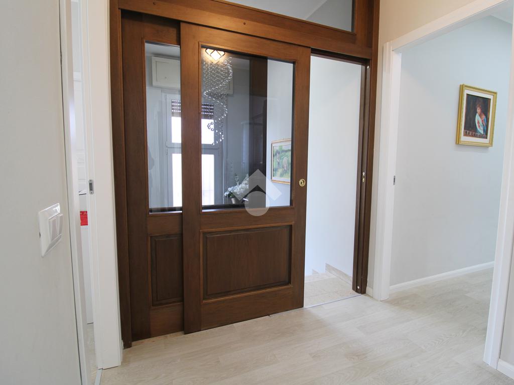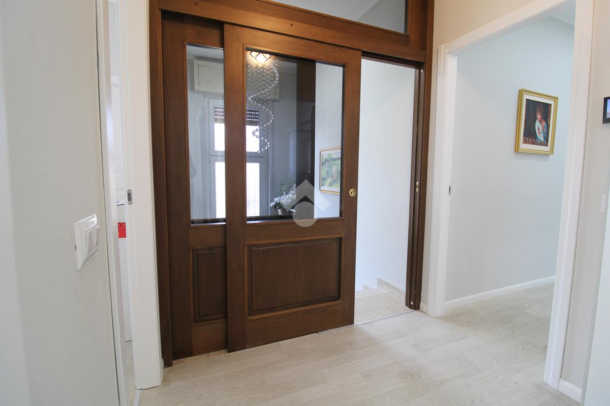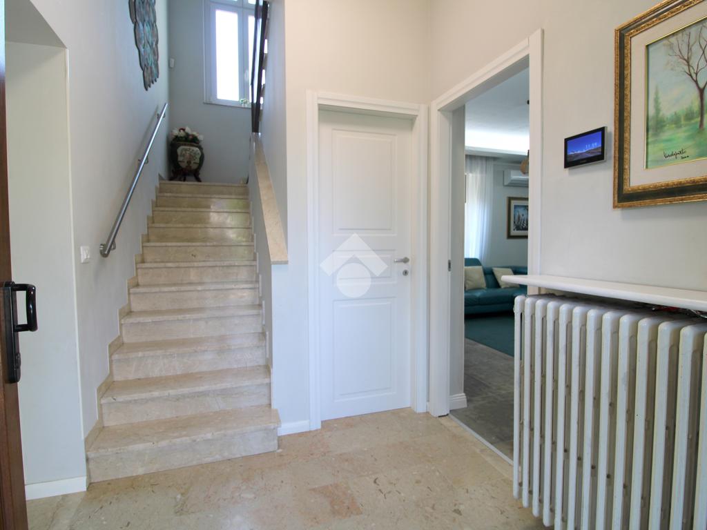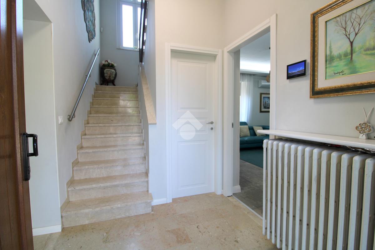 All'ingresso troviamo un disimpegno con la comoda scala a rampa in marmo, che separa la zona giorno dalla zona notte, oltre ad un ripostiglio nel sottoscala.