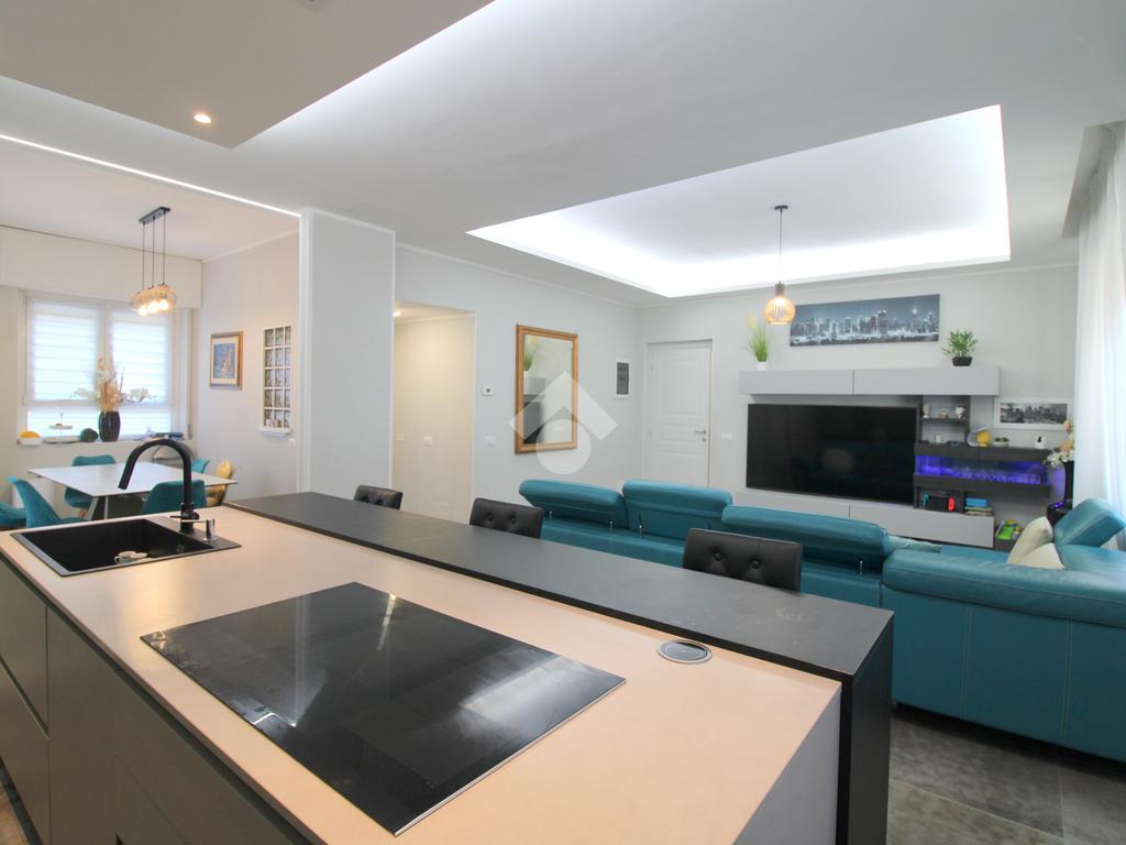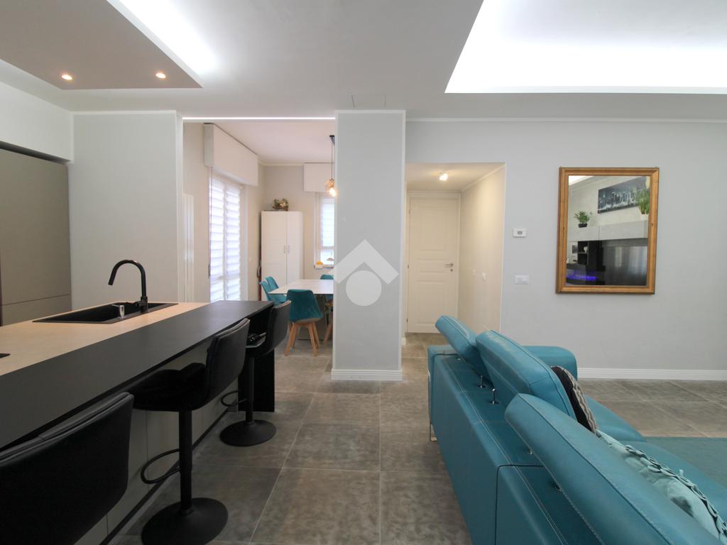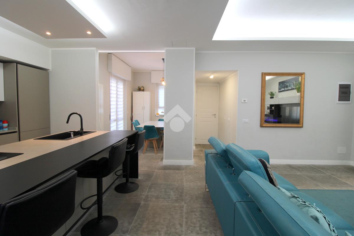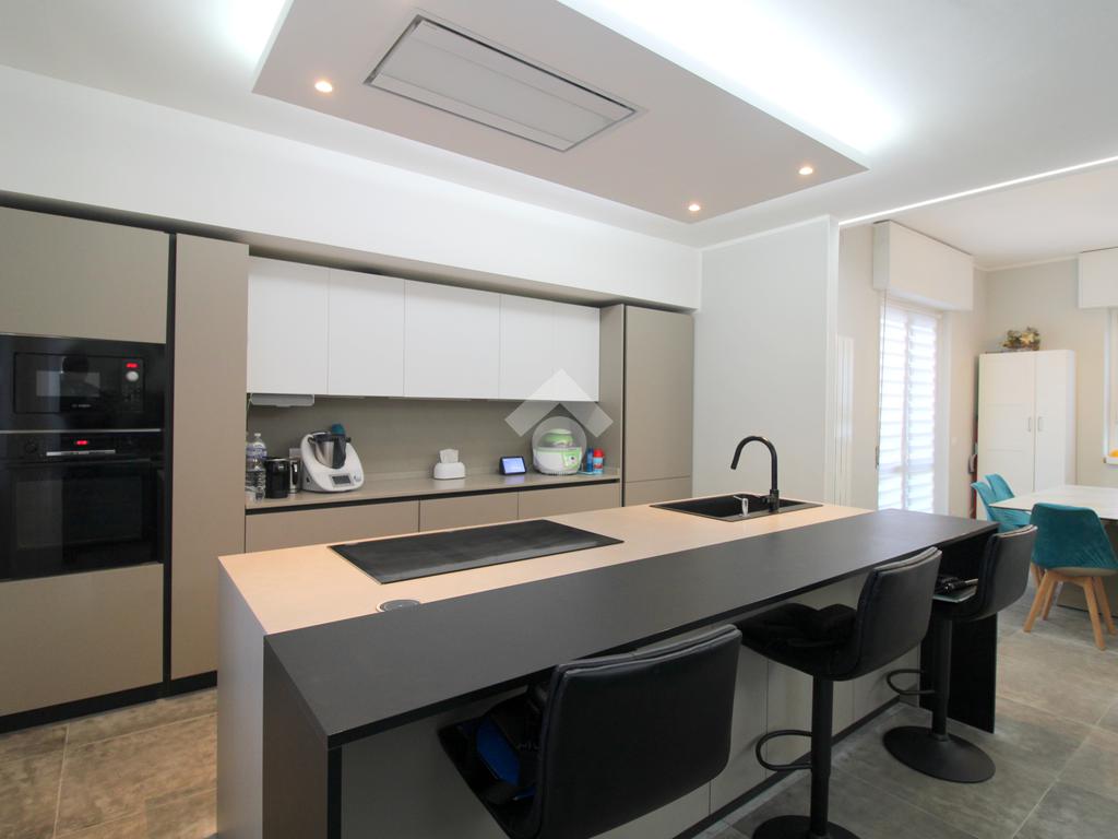 La zona giorno è composta da una importante zona living open space con cucina di oltre 60 mq! Troviamo quindi una zona relax, una moderna cucina completa di isola e piano ad induzione ed una zona pranzo con porta finestra che permette l'uscita in giardino. A concludere il bagno finestrato con doccia.
