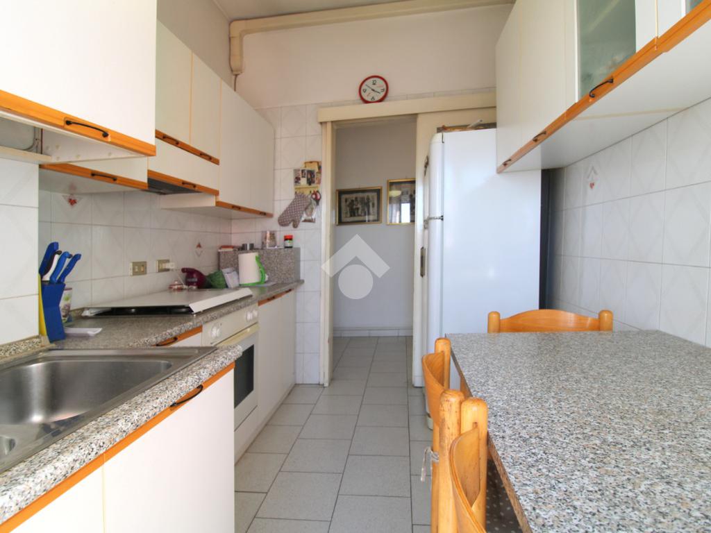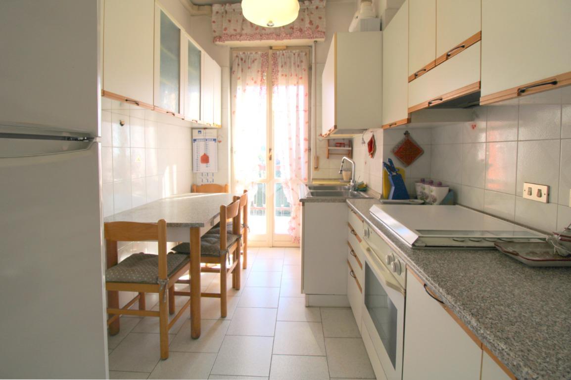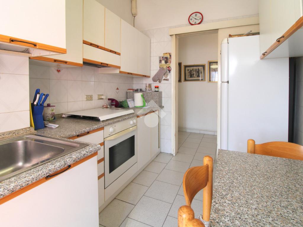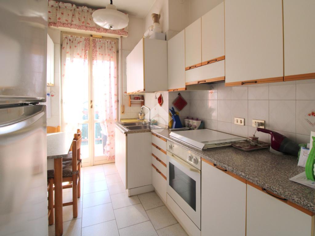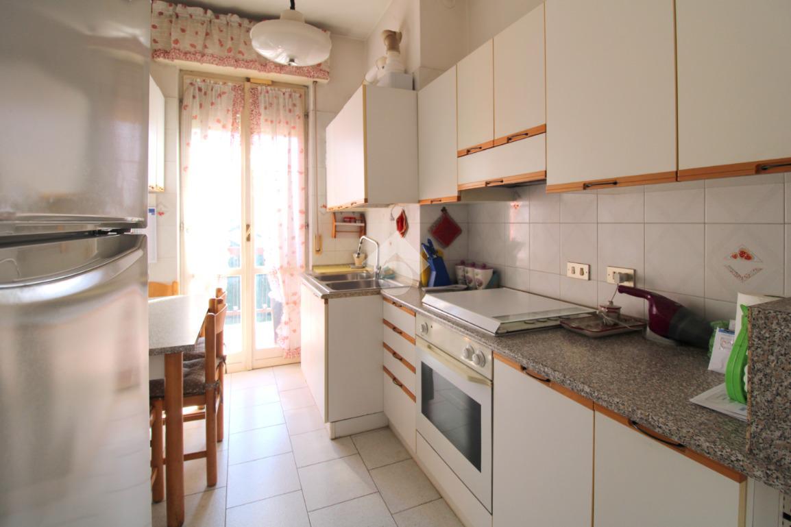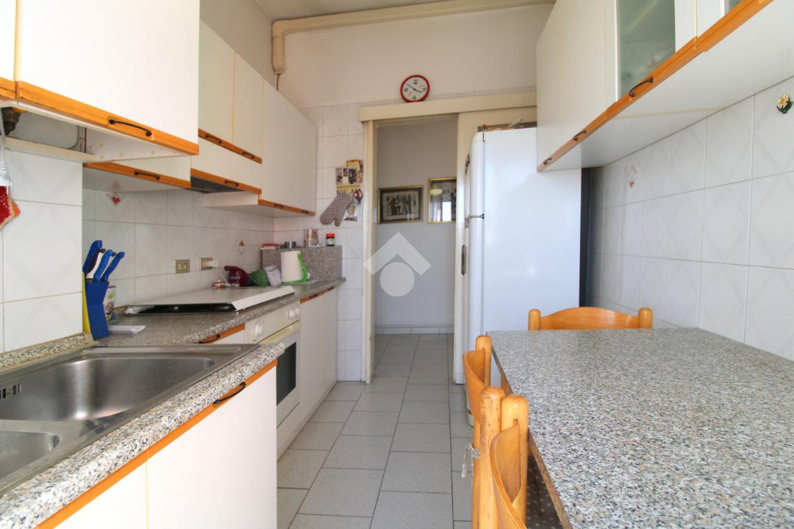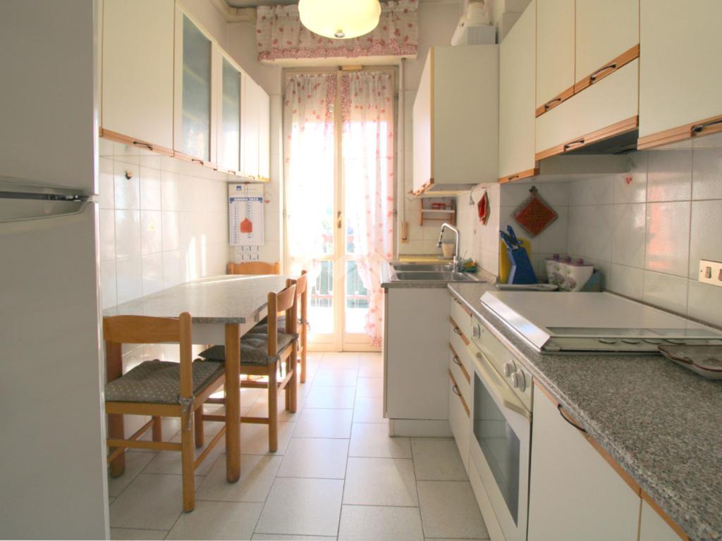 La cucina è abitabile ed è resa luminosa dalla porta finestra dalla quale si accede al balcone collegato al soggiorno.