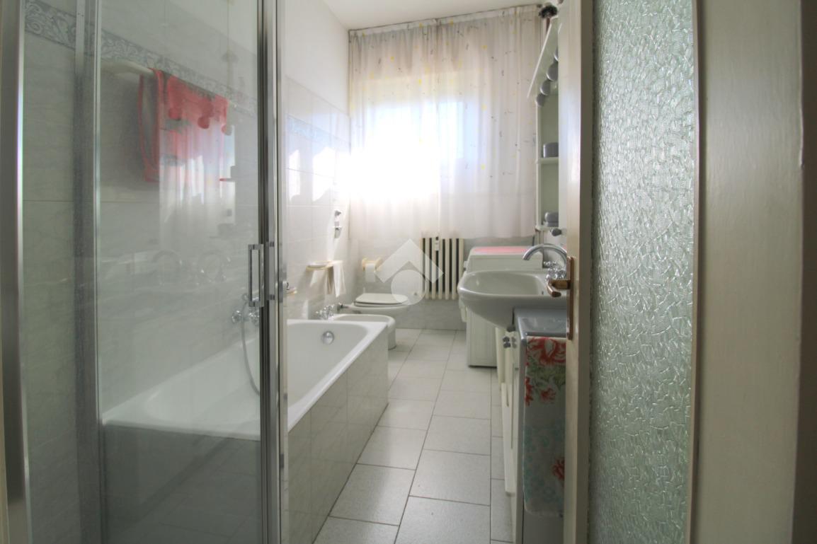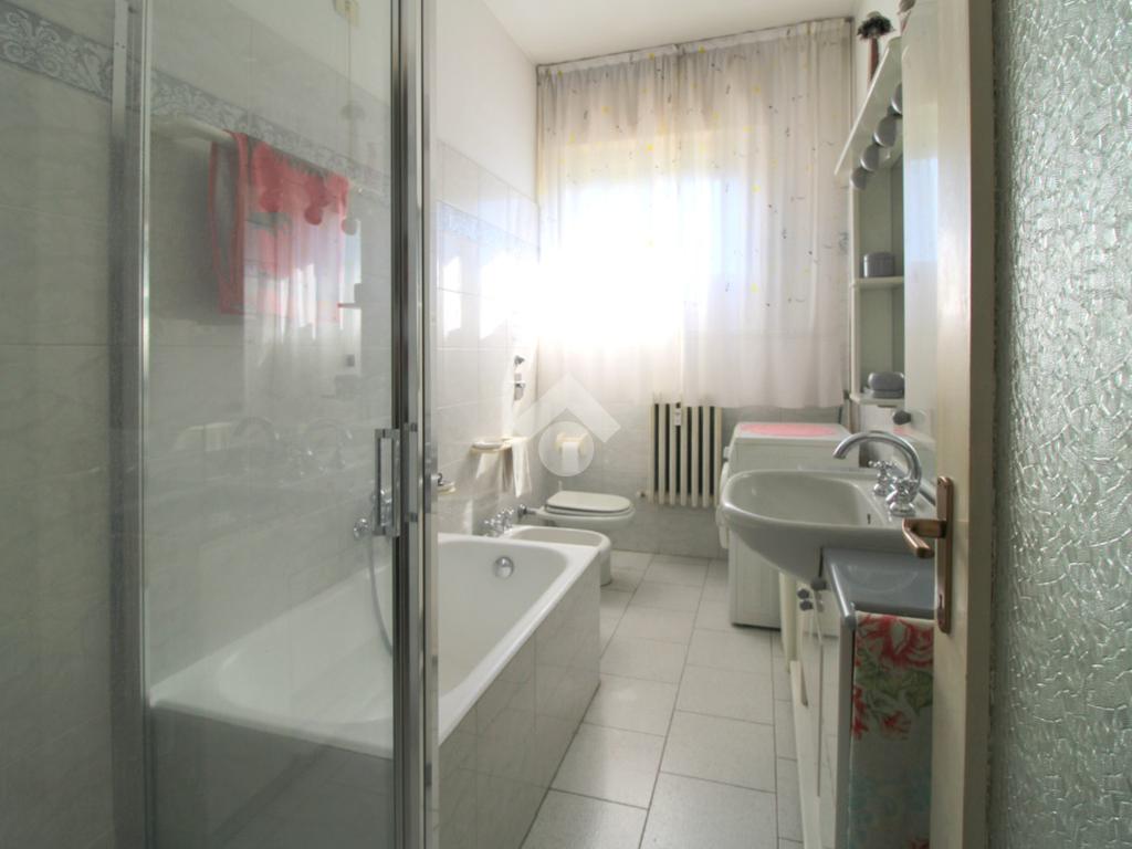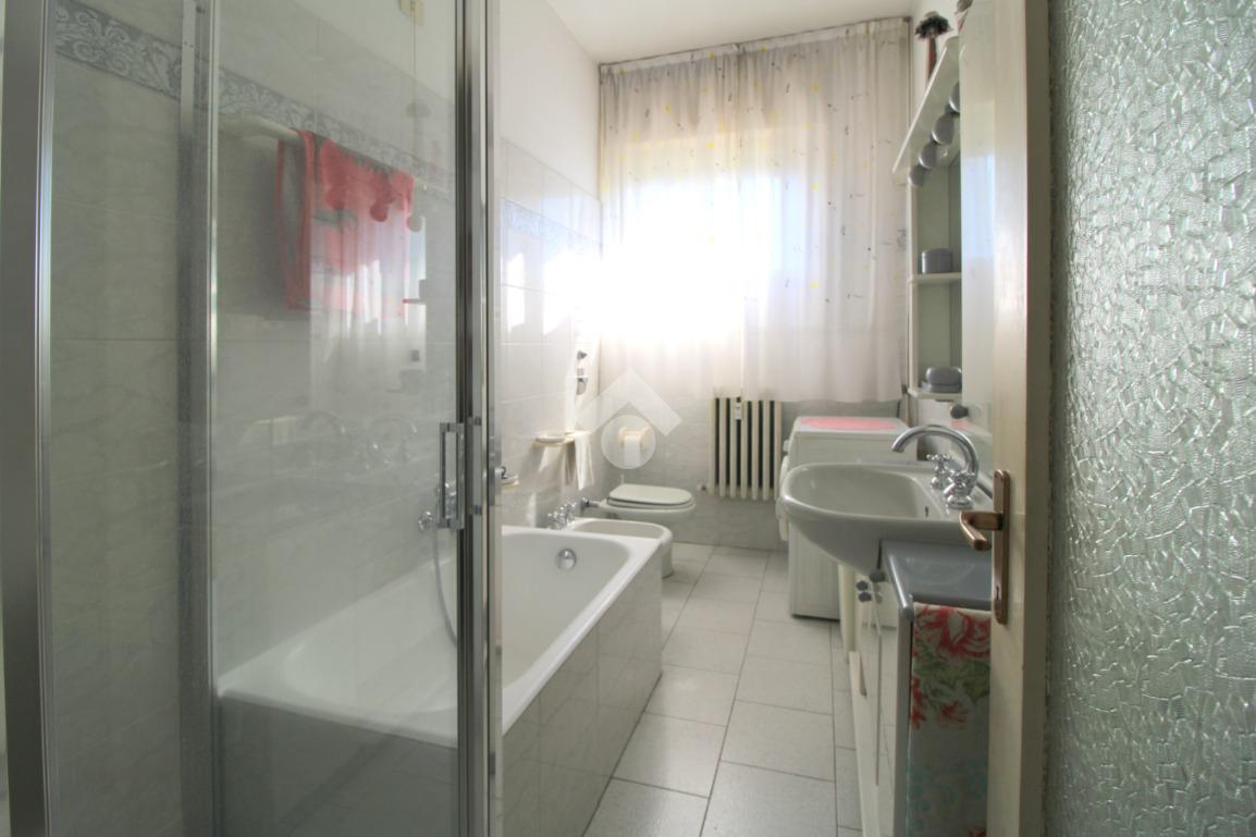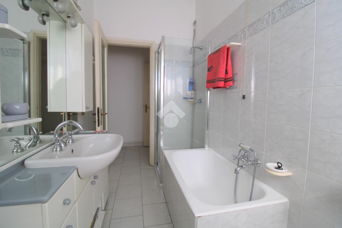 Il bagno finestrato è completo di doccia, vasca ed attacchi della lavatrice.